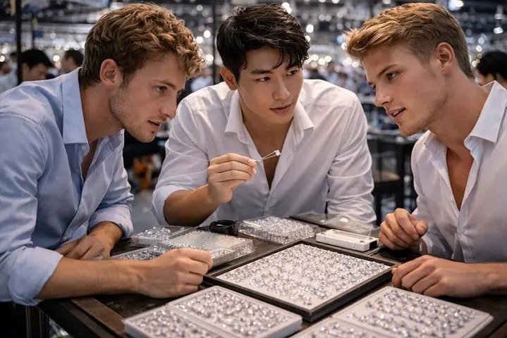 The scale of the exhibition itself was equally impressive. The fair expanded to occupy over 53,000 square meters, covering Halls 1–8 and Plenary Halls 1–2 at the convention center. A total of 1,222 companies from 19 countries participated, operating 2,794 exhibition booths, which created a vibrant marketplace where international buyers could explore everything from raw gemstones to finished luxury jewelry collections.