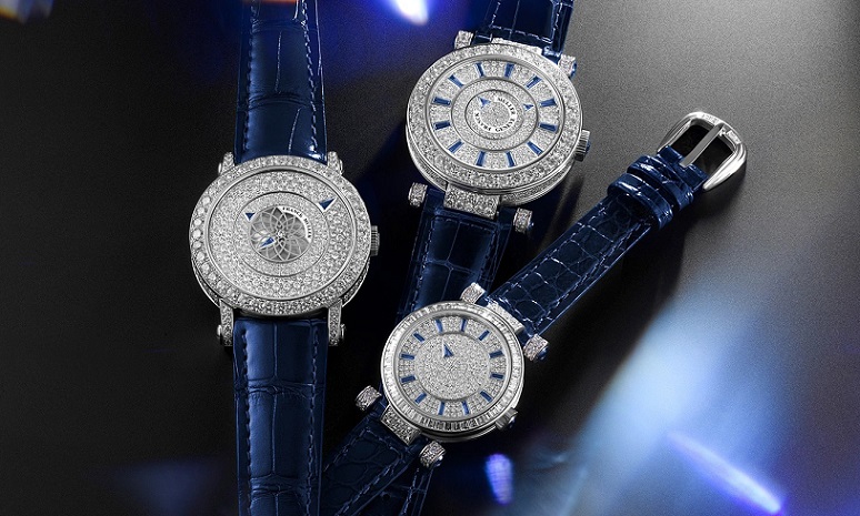 Visually, the Round Triple Mystery is nothing short of mesmerizing. The dial features three triangular indicators that orbit over a spiral pavé of brilliant-cut diamonds. In one variation, 237 brilliant-cut diamonds weighing 1.96 carats are meticulously set into the dial, with 0.07 carats of diamond or precious gems embedded into the rotating triangles themselves. The case is available in either white gold or rose gold and is also set with an additional 120 diamonds weighing 3.90 carats. For those who prefer extravagance, the baguette-cut variation offers 48 baguette-cut diamonds on the bezel totaling 4.92 carats, creating a seamless ring of brilliance.