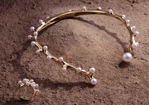 To mark its 70th anniversary, Tasaki expanded pearls into lifestyle products through collaborations with brands outside the jewellery world. Sneakers designed with Asics feature pearl detailing, while eyewear frames by Eyevan have pearl accents, proving that pearls can be integrated into everyday fashion. Even more avant-garde was a pearl sculpture shaped like a T-shirt, made from 20,000 pearls by designer Melanie Georgacopoulos, who has also pioneered slicing and hollowing pearls for daring, futuristic creations.